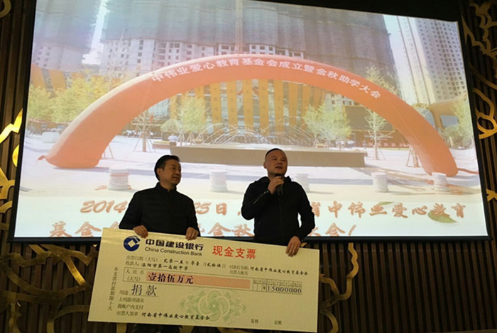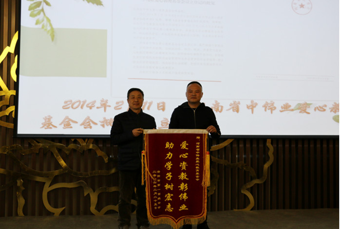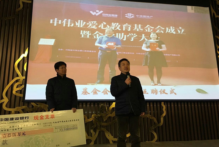 自2014年起河南省中偉業(yè)愛心教育基金會資助了洛一高2014屆“宏志班”學(xué)生,每年捐贈善款15萬元,以解決50名來自貧困家庭品學(xué)兼優(yōu)的孩子學(xué)習(xí)和生活保障問題。2015年中偉業(yè)愛心教育基金會如約送去教育善款。為此,洛一高黨委副書記逯軍一行,代表學(xué)校和廣大師生,為中偉業(yè)愛心教育基金會和中偉業(yè)集團送來了錦旗!“愛心資教彰偉業(yè),助力學(xué)子樹宏志”,錦旗上的每個字都傳達了中偉業(yè)集團的社會責(zé)任感和洛一高莘莘學(xué)子的感激之情。