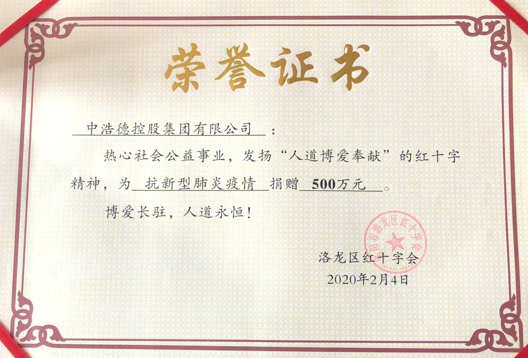 萬眾一心 攜手抗疫|中浩德集團向洛陽市洛龍區(qū)紅十字會捐款500萬元,助力打贏防疫戰(zhàn)!