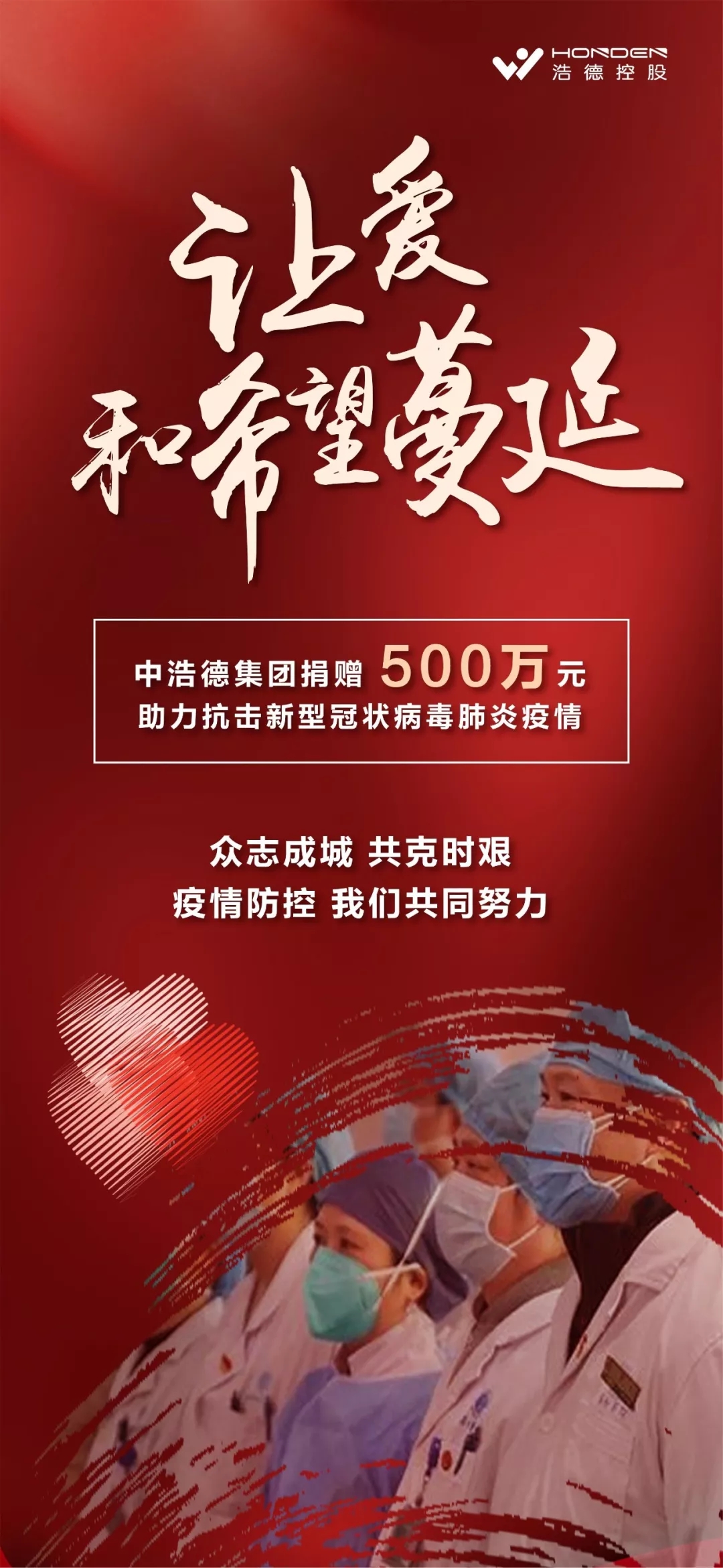 疫病無情,人間有愛!未來,中浩德集團將持續(xù)關(guān)注疫情發(fā)展,充分發(fā)揮優(yōu)秀民營企業(yè)的引領(lǐng)作用,在市委市政府的堅強領(lǐng)導(dǎo)下,從多方面入手,堅決扛起疫情防控防治的重大責(zé)任,堅定不移把各項決策落實到位,堅定發(fā)展信心,履行責(zé)任擔(dān)當(dāng),與社會各界一道砥礪前行、共克時艱,為最終打贏這場疫情防控阻擊戰(zhàn)做出應(yīng)有的貢獻(xiàn)!最后,向奮戰(zhàn)在疫情一線的所有工作者致以崇高的敬意,祈愿所有患者早日康復(fù)!武漢加油!中國加油!