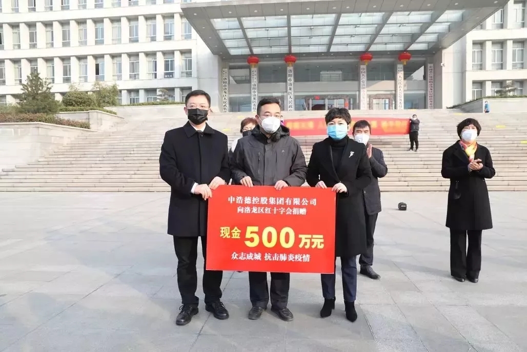 在舉國(guó)上下奮力抗擊新肺疫情的關(guān)鍵時(shí)刻,作為一家以“為社會(huì)創(chuàng)造價(jià)值”為擔(dān)當(dāng)?shù)膬?yōu)秀民企,中浩德集團(tuán)在多措并舉保障全司員工健康安全的同時(shí),積極踐行社會(huì)責(zé)任。此次疫情爆發(fā)之后,中浩德集團(tuán)密切關(guān)注疫情發(fā)展,在集團(tuán)董事長(zhǎng)張繼衛(wèi)的號(hào)召下,我集團(tuán)向社會(huì)各界捐款捐物達(dá)550余萬(wàn)元。其中,在集團(tuán)向洛龍區(qū)紅十字會(huì)捐款500萬(wàn)元后,又持續(xù)向洛陽(yáng)市公安局、安樂(lè)分局、洛龍區(qū)分局、洛龍區(qū)政府等一線單位捐贈(zèng)物資50余萬(wàn)元。